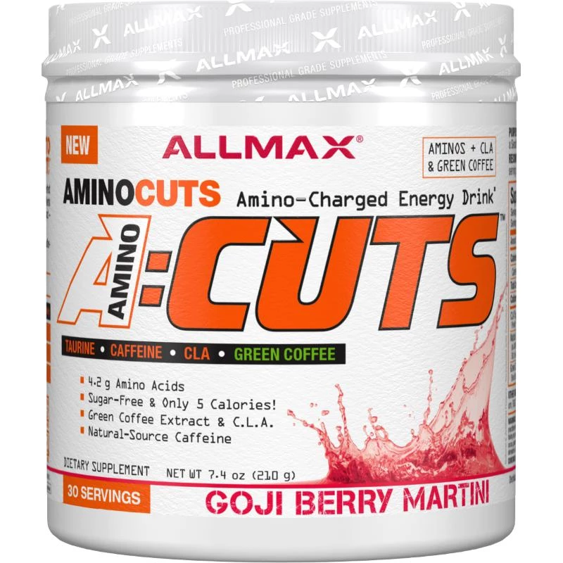 Allmax Nutrition ACuts 30 Servings is great as a pre-workout drink or for any time of the day use for an extra boost of energy and focus. Sugar-free amino charged energy drinks in a variety of delicious flavors. A: Cuts is the reliable pre-workout energy drink to give you the boost you need for your workout while helping your body lean out. High quality energy supplement to give you a small boost an energy any time needed throughout the day. Can take an extra scoop for even more energy.Â