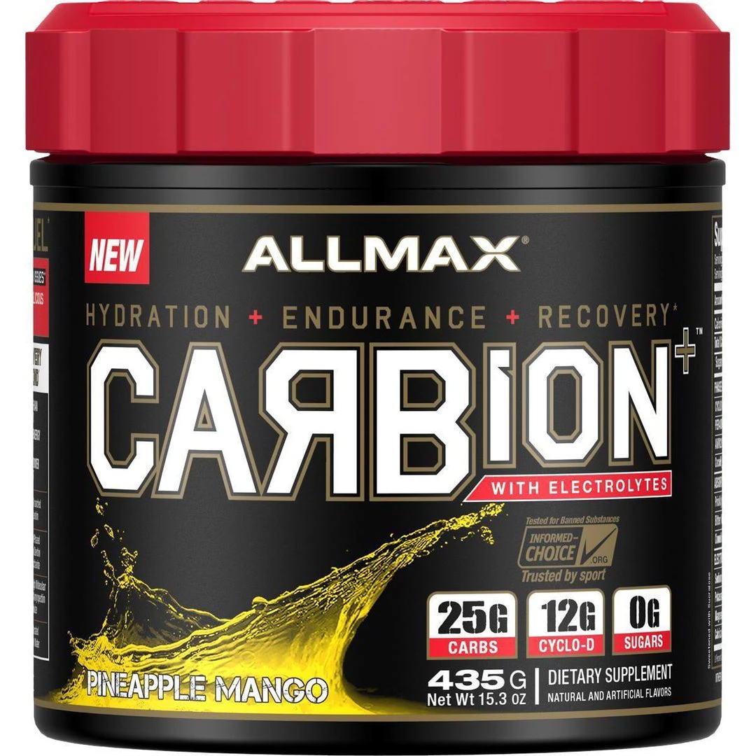Team Allmax was up to the challenge when we created a new Carbion+. It has been reformulated with a highly soluble carbohydrate blend that mixes easily and results in a clear, refreshing, incredibly delicious drink that will crush your thirst. Cyclo-D is an engineered carb that is designed to be essentially tasteless and highly soluble by breaking down long chains into highly branched cyclic chains and our Per4orm maltodextrin blend is agglomerated to make it more soluble. A perfectly balanced blend of multiple forms of electrolytes has eliminated the salty, metallic taste often associated with high electrolyte levels so each sip leaves you feeling refreshed and your thirst quenched. Energize your taste buds and conquer your thirst with new Carbion.