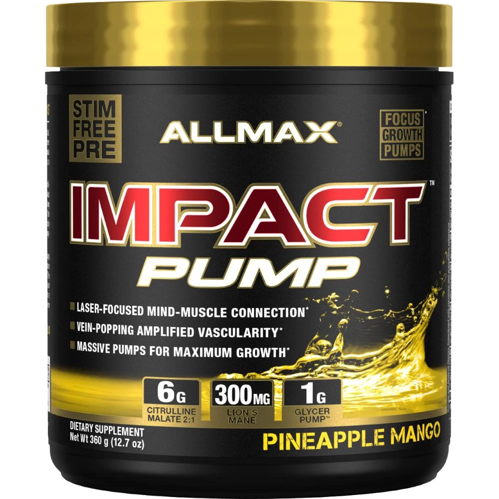Now you can POWER YOUR PUMP WITHOUT THE STIMS with the all-new IMPACT PUMP from ALLMAX Nutrition. Get everyone’s favorite extreme pre-workout, IMPACT, in a stim-free, pump focused version, IMPACT PUMP! An ultra-premium fully dosed pre-workout, IMPACT PUMP delivers the extreme focus and power you need when training for RESULTS, without the stims.