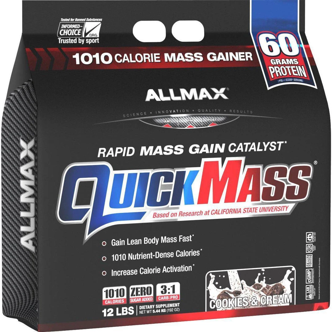 AllMax Nutrition Quickmass 12lb. 1,010 Calories Per Serving! Quick and delicious way to pack in calories to gain size and mass.Â