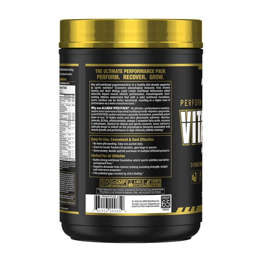 VITASTACKâ„¢ provides the most complete, pro-quality and highest dosage multi-pack vitamin, mineral and nutrient pack. Without it, your progress could be sidelined.