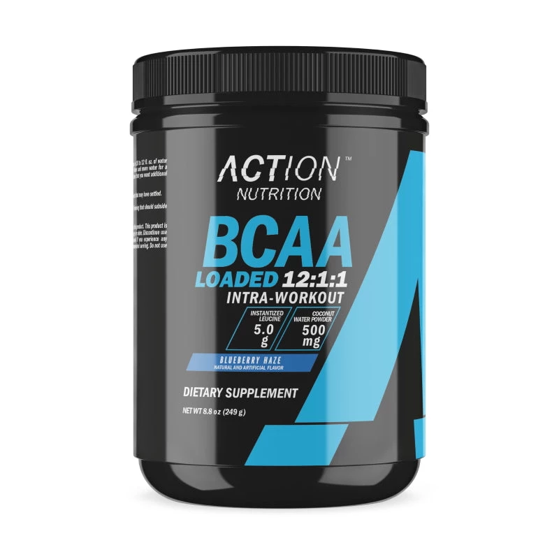 Action Nutrition BCAA Loaded has a 5-gram leucine mega dose delivered at a recovery inducing 12:1:1 BCAA ratio in every serving! Even with the massive amount of Leucine, Isoleucine, and Valine – BCAA Loaded mixes Foam-Less and tastes amazing.Â
