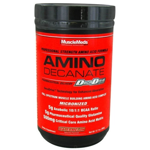 AMINO DECANATE’s scientifically advanced amino acid complex with DecaDrive delivery has set a new standard in amino acid supplementation. New research reveals that in addition to Branched Chain Amino Acids (BCAAs) and glutamine, other critical amino acids are needed to ensure maximum muscle growth, recovery and performance. During exercise, your body has a greater demand for aminos to fuel energy production. Any deficiency in certain amino acids will compromise muscle growth and performance. This deficiency is known as the “Rate Limitint Amino Acid Factor.” AMINO DECANATE is a highly anabolic formula containing a ptent and precisely formulated 10.5 gram mega-dose of 19 critically important amino acids desgined to maximize anabolic muscle building and prevent catabolic muscle wasting, while feeding both the Citric Acid Cycle and Alanine Glucose Cycle for enhanced energy and muscle endurance. Each serving of AMINO DECANATE provides 5 grams of BCAAs in a highly anabolic leucine loaded 10:1:1 ratio, yielding 10 times the amount of leucine to isoleucine and valine. the latest research shows that leucine is the key anabolic activator of protein synthesis for peak muscle building. AMINO DECANATE also contains a full 5 gram dose of pure premium grade L-glutamine for a more favorable anabolic/ani-catabolic environment to further support muscle growth and speed recovery. To overcome Rate Limiting Amino Acid deficiencies, each serving also provides 500 mg of Critical Core Amino Acids (CCAAs) to fuel the Citric Acid Cycle and Alanine Glucose Cycle, while feeding muscle tissue.