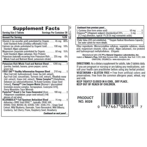 1200 mg of Potassium-Rich Whole Food Blend: includes parsley, baobab, banana, green pepper, carrot and green tea, for scientifically-proven nutritional support of healthy blood pressure control.