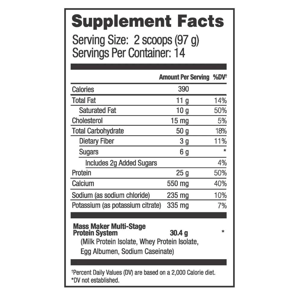 4 High-Quality Proteins: MMU’s multi-stage system of fast- and slow-release proteins (25 g of protein per serving) supports a sustained mass-building state. Each protein is easily digested and complete with all of the essential amino acids that your muscles need to grow.