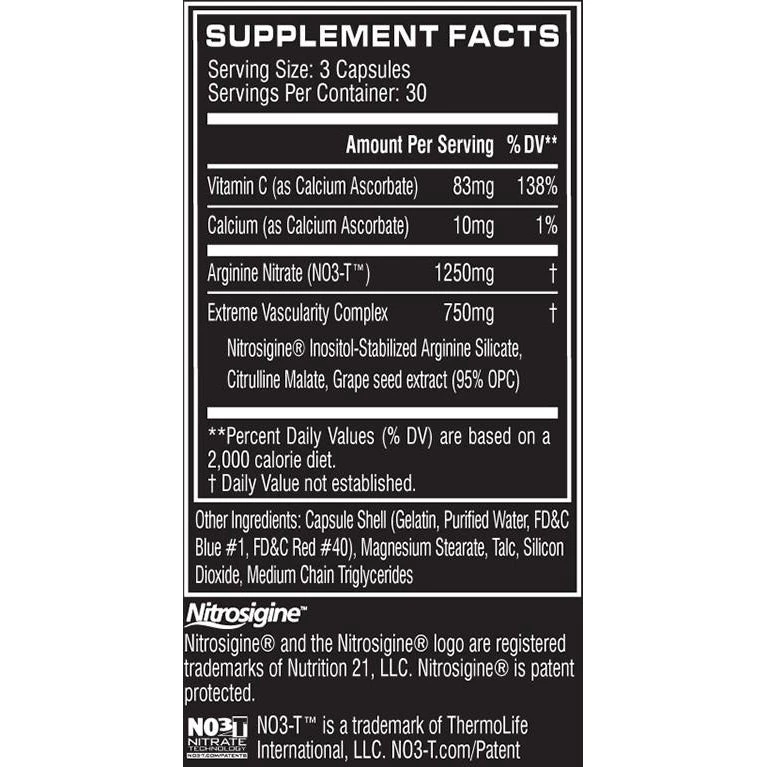Nitric Oxide supplements have been the weapon of choice for maximizing the pump. Essentially, Nitric Oxide helps promote blood flow to the muscles, which in turn supports a better pump. NO3 Chrome utilizes NO3 in the form of Arginine Nitrate—a fusion of L-Arginine and Nitrate. Combining these two efficient and powerful ingredients helps give you the long lasting, unbelievable pumps to help your muscle gains.*