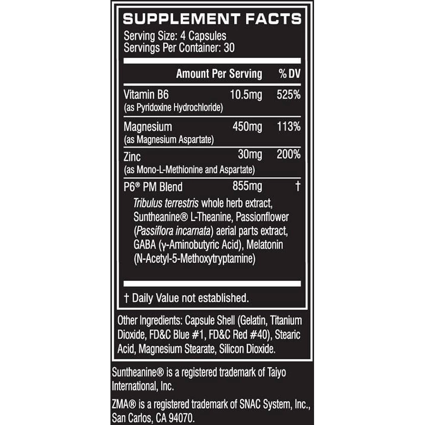 To optimize the recovery state, P6 PM features ZMA and Tribulus Terrestris.