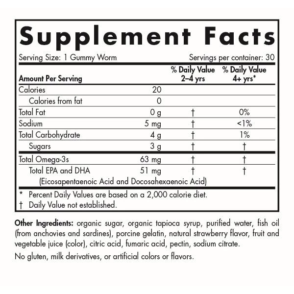 A delicious strawberry flavored gummy worm with fish oil. A tasty treat for your children with some nutritional value.Â