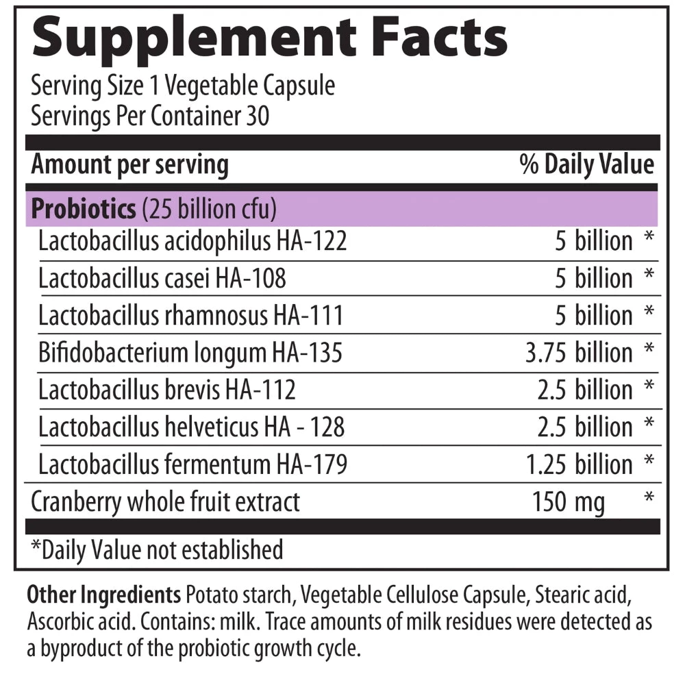 UT Biotic provides 25 billion probiotics fromĀ seven strains known to be beneficial for urogenital health, plus 150mg of PACran⢠cranberry extract per serving.Ā