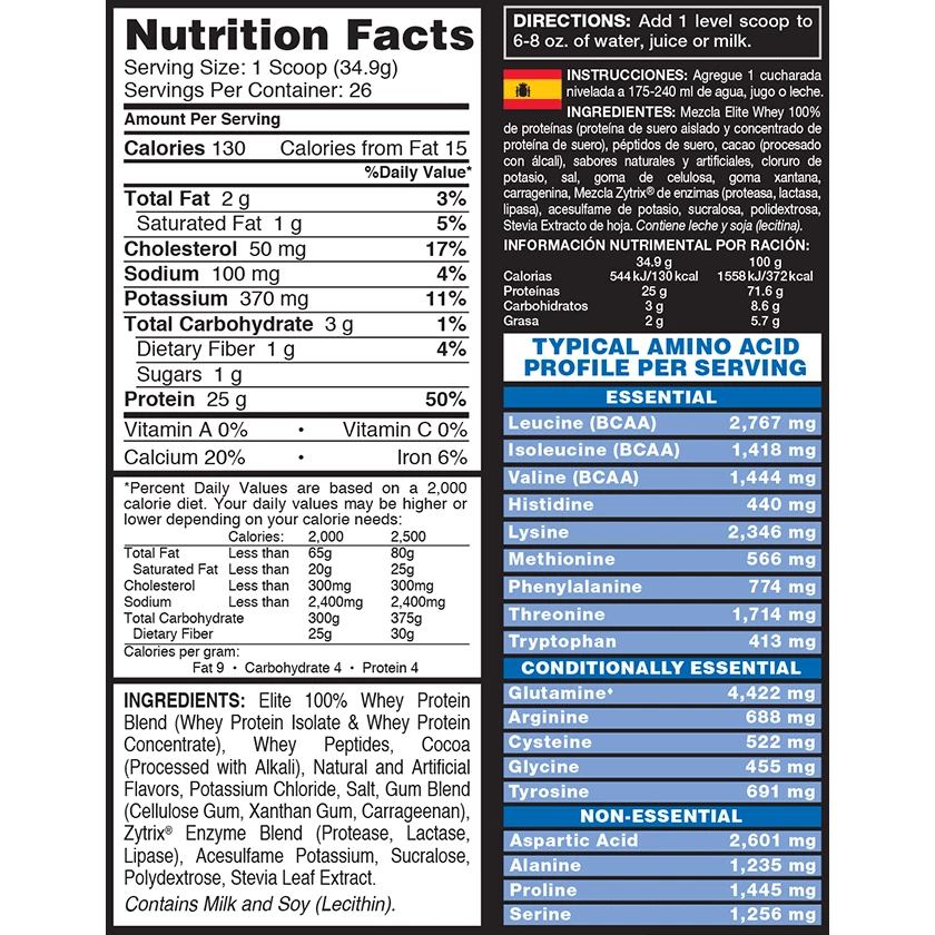 Elite 100% Whey Protein Description from Dymatize Nutrition