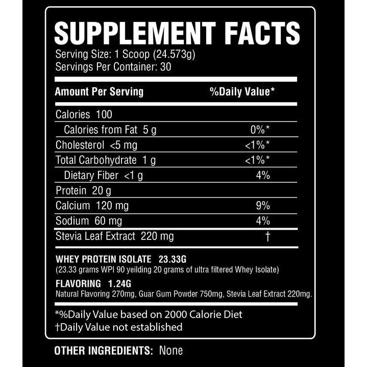 MY Whey Protein Isolate is guaranteed to be the absolute cleanest protein available. Each serving contains 20 grams of complete protein derived solely from 100% Whey Protein Isolate.