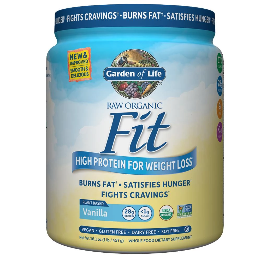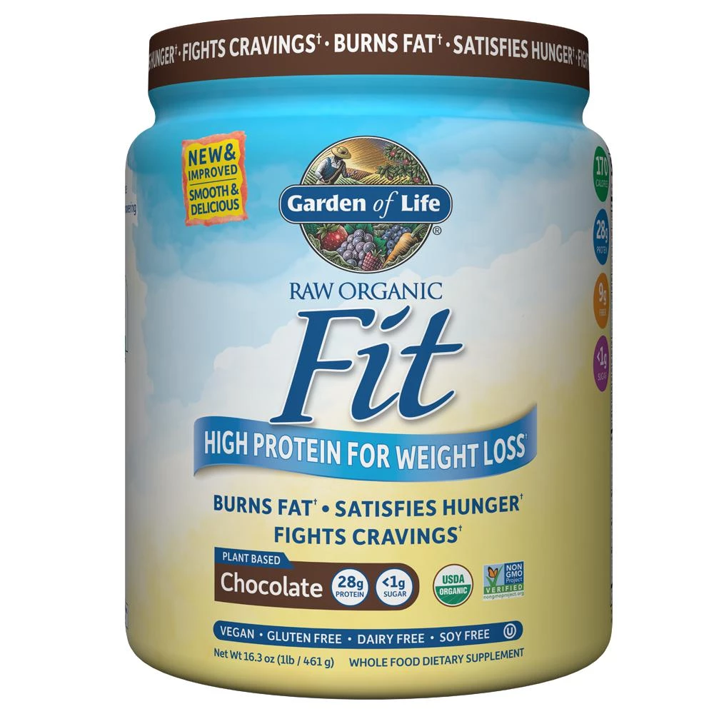 Garden of Life Raw Organic Fit Protein 10 Servings Certified USDA Organic, Raw, plant-based, vegan, high-protein powder specifically designed for weight loss. Raw Organic Fit Protein Powder BenefitsBoosts energy and builds lean muscle mass. Satisfies hunger and helps you stay full longer with organic whole food fiber. It contains easily digested plant proteins PLUS probiotics. 28g of complete protein. The ultimate complete protein. Garden of Life is the perfect organic protein to add to your daily routine to build lean muscle.Â