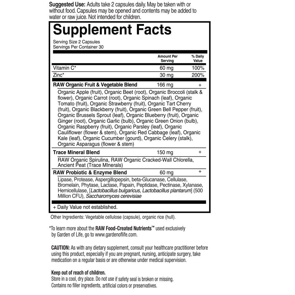 Garden of Life Vitamin Code Raw Zinc 60VC. Made with individually grown nutrients utilizing probiotic cultivation to produce RAW Food-Created Nutrients™, Vitamin Code supplements are delivered in a whole food base of fruits and vegetables. Vitamin Code supplements are RAW, which not only means that they are produced below 115º F but also means that these nutrients come with their natural cofactors, along with live probiotics and enzymes, just like raw foods! Vitamin Code raw powders are delivered in capsules without any binders or fillers—everything you want and nothing you don’t want.