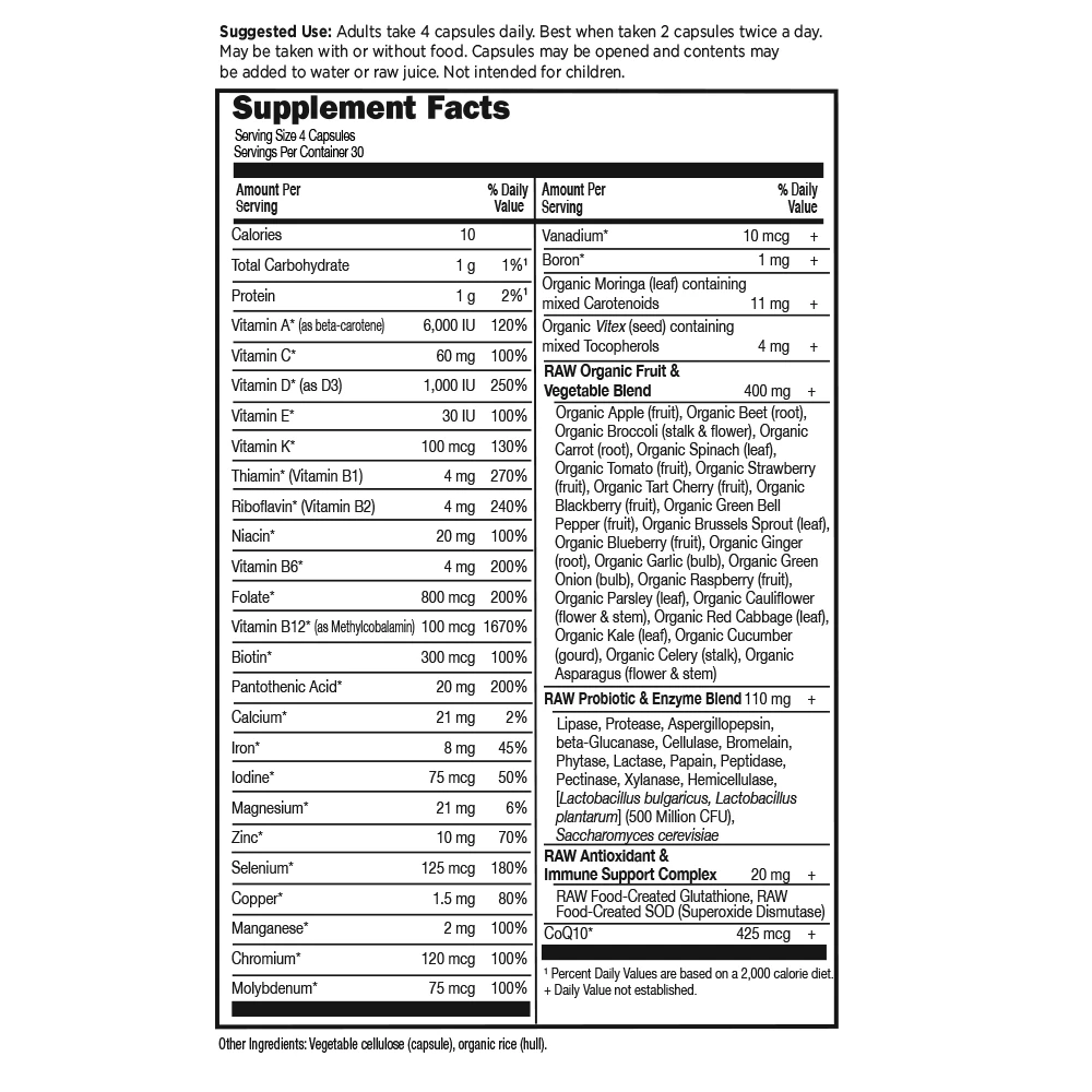 Made with individually “grown” nutrients utilizing probiotic cultivation to produce RAW Food-Created Nutrients™, Vitamin Code supplements are delivered in a whole food base of fruits and vegetables. Vitamin Code supplements are RAW, which not only means that they are produced below 115º F but also means that these nutrients come with their natural cofactors, along with live probiotics and enzymes, just like raw foods! Vitamin Code raw powders are delivered in capsules without any binders or fillers—everything you want and nothing you don’t want.