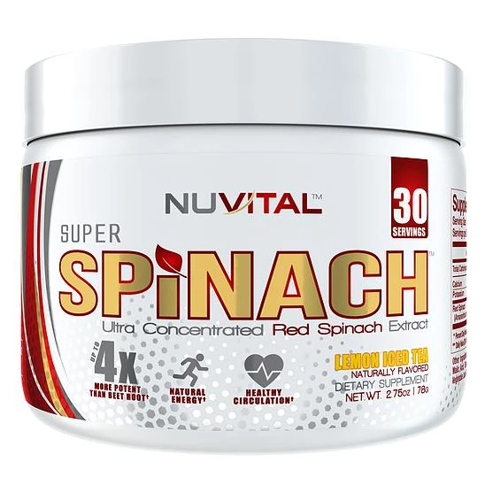Super Spinach contains a NON-GMO Red Spinach Extract that contains up to 4 times the amount of natural nitrate as compared to beet root and has been shown to enhance Nitric Oxide levels in the body, in turn promoting cardiovascular health and supporting the function of the body’s vital organs.Â