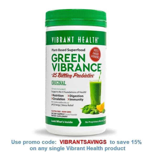 Use promo code: VIBRANTSAVINGS to save 15% on any single Vibrant Health product
