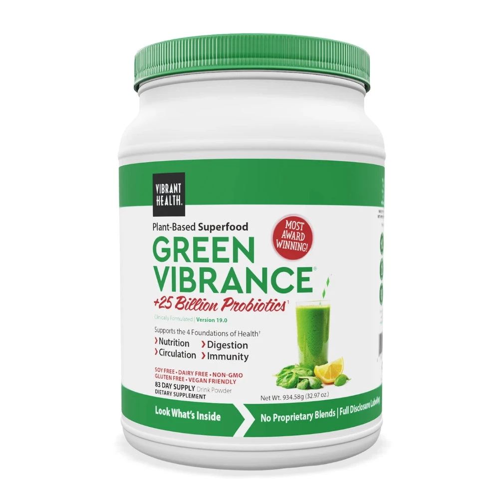 With over 25 billion probiotics from 12 strains and prebiotics/enzymes, Vibrant Health Green Vibrance is bound to have you feeling happy and healthy. Bulk supply to keep you going for months!