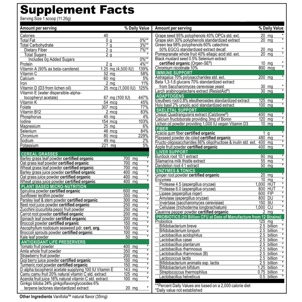 - Dynamic by design: Contains certified organic cereal grass powders and juices, goji berries, astragalus, spirulina, holy basil, flaxseed powder and so much more