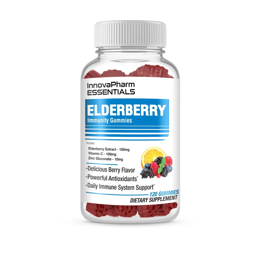 InnovaPharm Essentials Elderberry Immunity Gummies 120ct Encourages immune health for all-season defense, great-tasting, and convenient gummy form. Contains Zinc and Vitamin C, two crucial nutrients known to support immunity, creating a triple-action immune blend of unparalleled quality and potency!