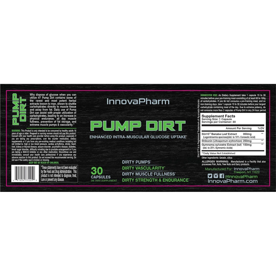 Innovapharm Pump Dirt 30C. Experience Intense pumps/vascularity during training. MAkes your muscles fuller giving you better pumps.Â