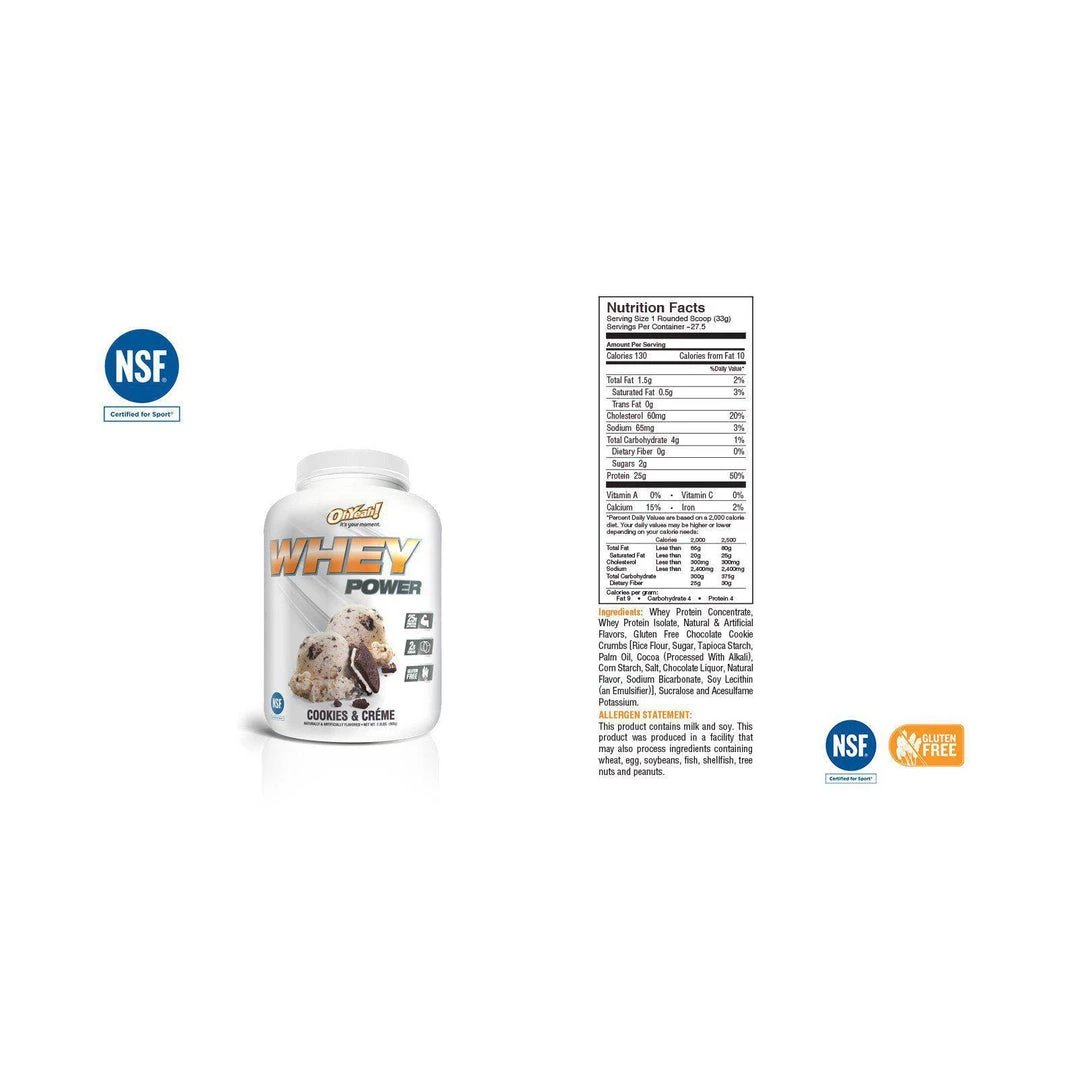 OhYeah! Whey Power is formulated with the same flavor system and technology that you have grown to trust from OhYeah! Nutrition. The instant mixabilty allows ingredients to blend easily, and the delicious taste will surpass all expectations. Through superior dispersion, OhYeah! Whey Power delivers a smooth and consistent shake that taste great and powers some of the best moments of your life.
