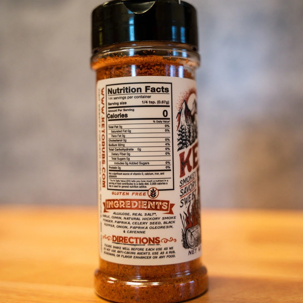 Ingredients: Allulose, Real Salt, Garlic, Cumin, Natural Hickory Smoke Powder, Paprika, Celery Seed, Black Pepper, Onion, Paprika Oleoresin, Cayenne.