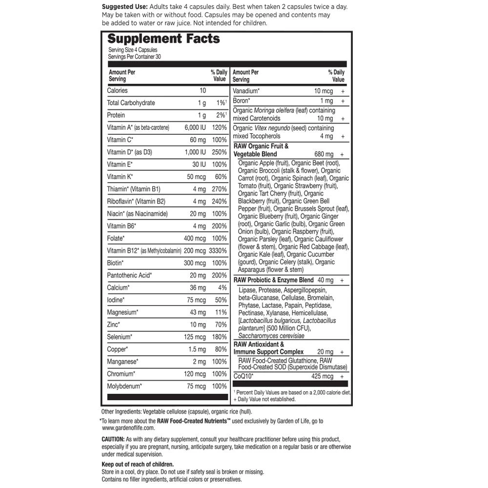 Made with individually “grown” nutrients utilizing probiotic cultivation to produce RAW Food-Created Nutrients™, Vitamin Code supplements are delivered in a whole food base of fruits and vegetables. Vitamin Code supplements are RAW, which not only means that they are produced below 115º F but also means that these nutrients come with their natural cofactors, along with live probiotics and enzymes, just like raw foods! Vitamin Code raw powders are delivered in capsules without any binders or fillers—everything you want and nothing you don’t want. Whole-food based multivitamin.