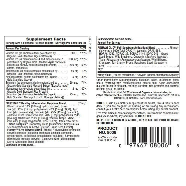 With premier KoACT brand calcium, full-spectrum bone-targeted antioxidant Rejuvabolic Blend, whole food nutrition for healthy inflammation response, and Organic Gold Standard Potentiating Nutrients, Nature’s Plus AgeLoss Bone Support is the most sophisticated anti-aging bone formula ever developed!