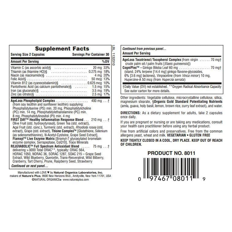 AgeLoss Organic Gold Standard Potentiating Nutrients (amla, guava, holy basil, lemon, brown rice, and curry leaf extract) optimize these age-defying nutrients.