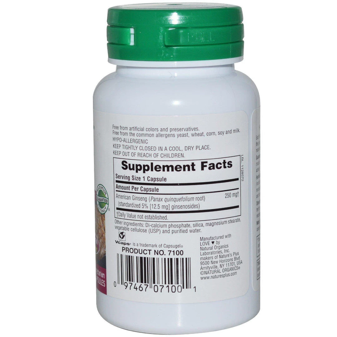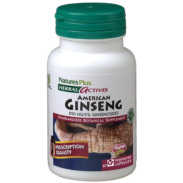 Nature’s Plus Herbal Actives American Ginseng root extract is uniformly standardized to a minimum of 5% (12.5 mg) ginsenosides to guarantee that each and every capsule provides consistent potency and activity. Each capsule, providing the greatest concentration of active botanical principles, maximizes the synergistic benefits of the whole root, which naturally contains more than twenty saponin triterpenoid glycosides in a potent Rb1/Rg1 profile.