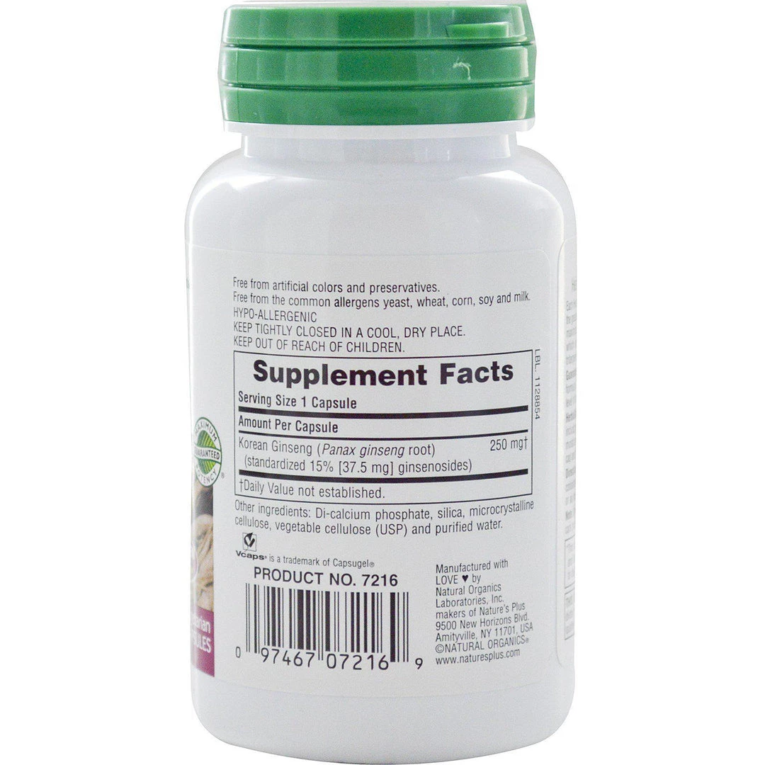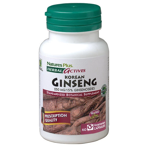 Korean Ginseng, esteemed by the Chinese, is believed to be the most widely used herb in the world. Nature’s Plus Herbal Actives Korean Ginseng root extract is uniformly standardized to a minimum of 15% (37.5 mg) ginsenosides to guarantee that each and every capsule provides consistent potency and activity. Each capsule, providing the greatest concentration of active botanical principles, maximizes the synergistic benefits of the whole root, which naturally contains more than twenty saponin triterpenoid glycosides in a potent Rg1/Rb1 profile.