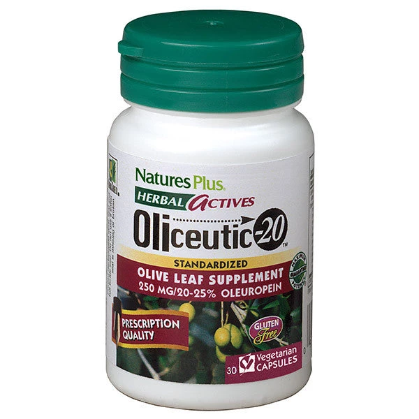 Nature’s Plus Herbal Actives Oliceutic-20 is an ultra-potent, safe and convenient capsule form of the best standardized olive leaf extract available anywhere. Oliceutic-20 has 20-25% oleuropein: maximum potency for maximum nutritional support of the natural defenses. In addition, Oliceutic-20 has maximum stability because, unlike its competitors, this breakthrough formula has 10 other active components with potent antioxidant properties.