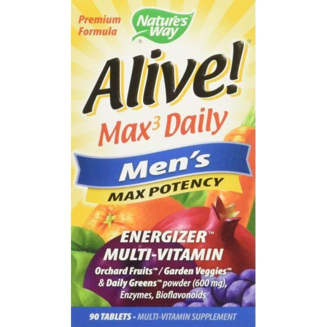 Alive!® Men’s MAX Potency formula is the most complete and nutritionally diverse multi-vitamin optimally balanced to support mens health. This multi-vitamin contains unique nutrient blends such as eleuthero, rhodiola and korean ginseng for energy & endurance, saw palmetto and lycopene for prostate support and resveratrol, CoQ10 and hawthorn for cardiovascular support.