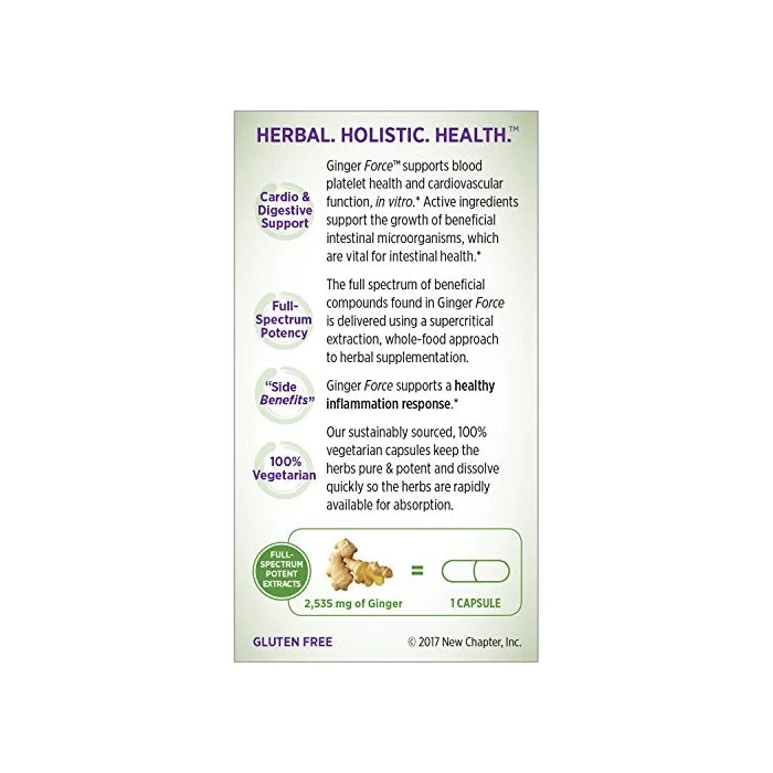 100% vegetarian Ginger Force capsules support intestinal health, cardiovascular function, and a healthy inflammation response.