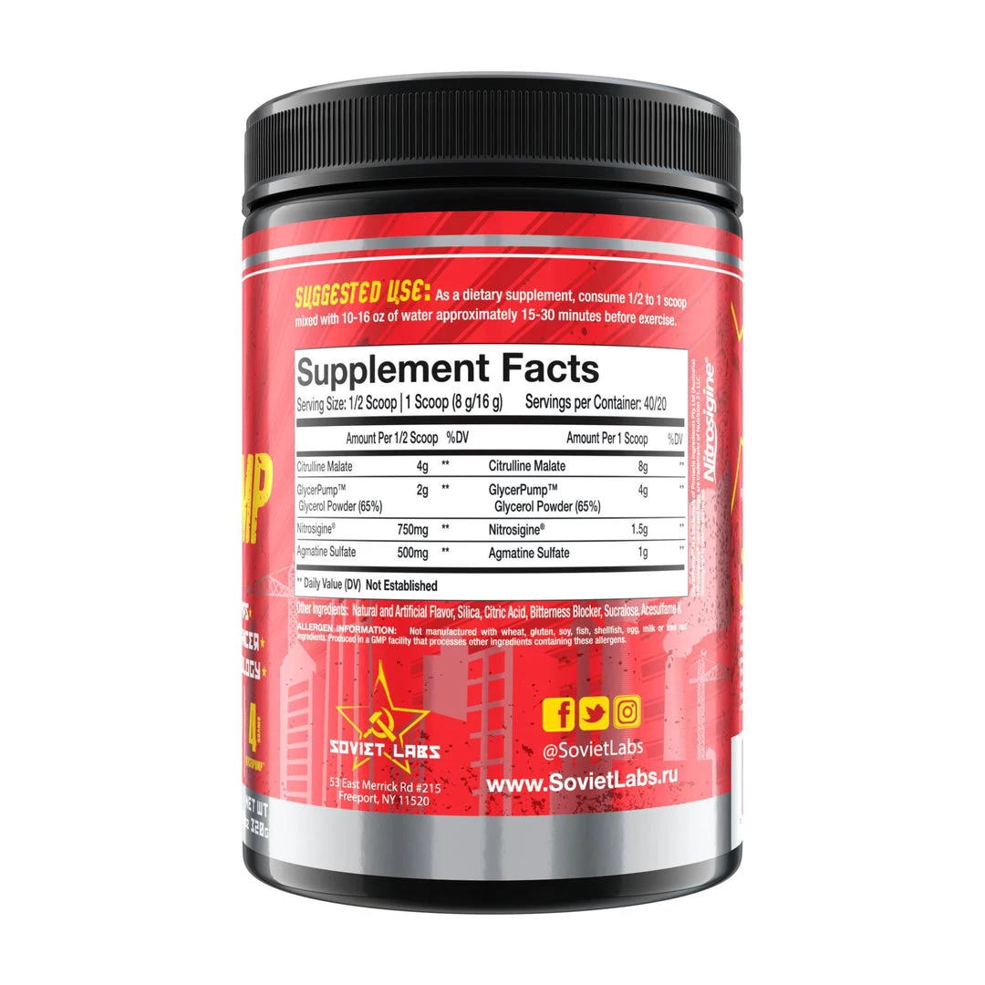 Putin Pump yields massize doses of the most effective nitric oxide enhancing ingredients known to mankind leaving users with Vladimir-like vascularity and mind blowing pumps from the Motherland. Only Soviet era research could bring about the most effective, highly dosed, stimulant free, nitric oxide boosting pre-workout ever before seen.