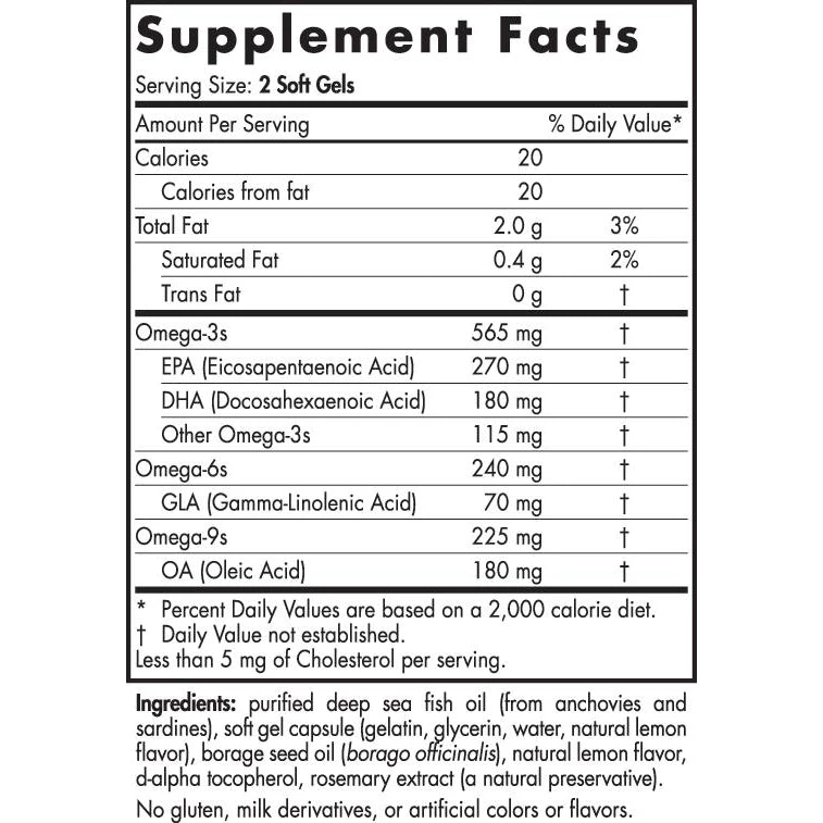 - Combines pure, fresh omega-3 fish oil with sustainably sourced borage oil