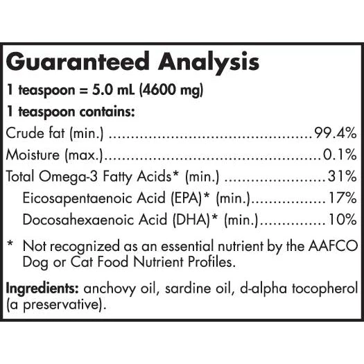 Nordic Naturals Omega-3 Pet for Cats and Small Breed Dogs is an excellent source of the omega-3 essential fatty acids EPA and DHA. It is an essential supplement to promote optimal pet health and wellness at home. Our Omega-3 Pet Soft Gels oil is derived exclusively from wild anchovies and sardines sustainably sourced from the South Pacific and Atlantic oceans.
