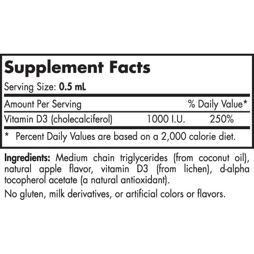 Vitamin D3 Vegan is a unique formula specifically developed for vegans, strict vegetarians, or for those who prefer a non-lanolin form of vitamin D3. Sourced from organic lichen, this plant-based liquid formula is in the natural form of vitamin D (cholecalciferol) and is better absorbed and utilized by the body.* Each serving provides 1000 I.U. of vitamin D3 for healthy bones, mood, and immune system function.