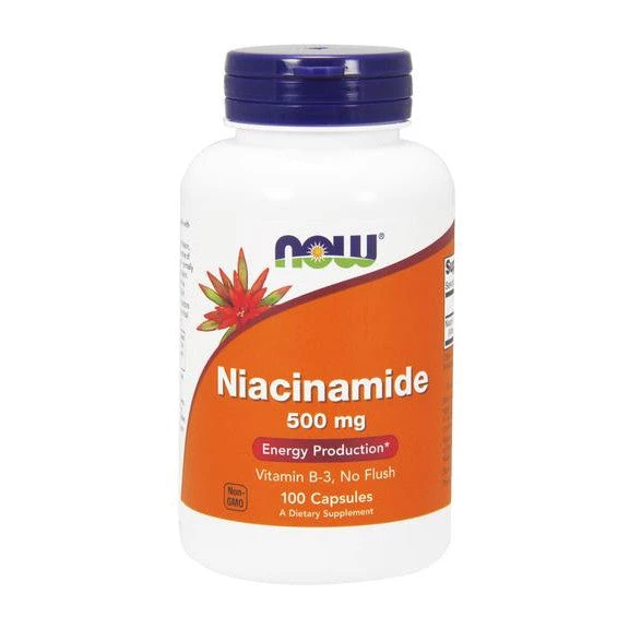 Niacinamide (Vitamin B-3) is an essential member of the B-vitamin family that must be obtained from the diet. It is the precursor to Niacin, but does not cause the “flush” normally associated with Niacin intake. Niacinamide is a water-soluble vitamin.