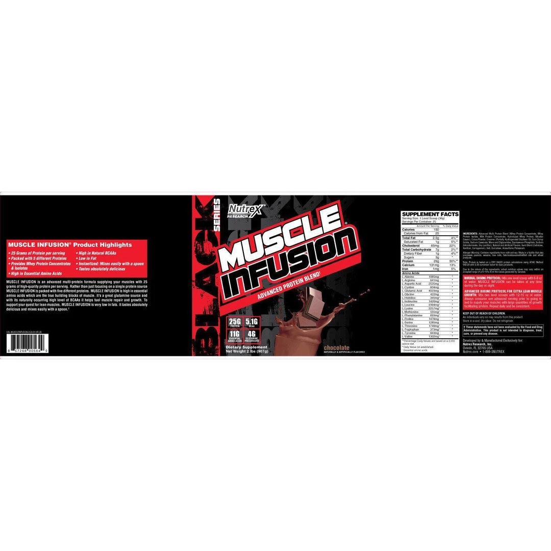 Nutrex Muscle Infusion Protein 5LB. A quality protein blend to provide you with enough protein to help your muscles recover and grow. Muscle infusion tastes great and mixes well.Â
