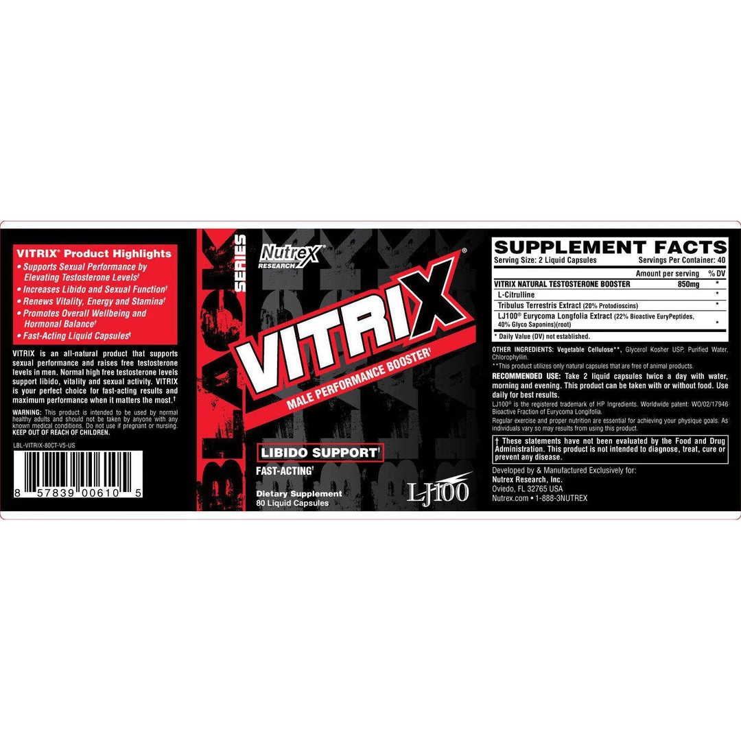Vitrix’s superior formula helps you become the ALPHA MALE in the bedroom or any time it is needed. VITRIX is still one of Americas most sought after sexual enhancers and now offers you even more. The Black Series VITRIX is refined with ingredients that improve male libido and support natural testosterone levels. Added L-Arginine and Yohimbine help serve as a vasodilator allowing for an increase in blood and oxygen flow to support stamina and performance in the bedroom. Do not settle for an average performance in the bedroom when satisfaction is just a few capsules away. VITRIX gives you what you need, when you need it, fast.