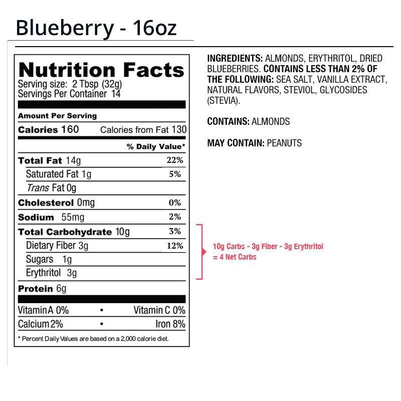 No one should have to miss out on their favorite flavors and desserts. Our Blueberry Cinnamon Bun Almond Nut Butter is perfectly blended with real blueberries, and just a pinch of cinnamon for a decadently satisfying treat. Start your day off with low carb Blueberry Cinnamon Bun Nut Butter that tastes like dessert without the junk. Curb your cravings and stay full longer.
