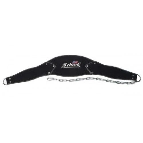 The Schiek Model B5008 Dip Belt is made from black amara synthetic leather and features a padded back, hip and rib contour for comfort and to reduce slippage and heavy duty chain and carabiner. One size fits all.