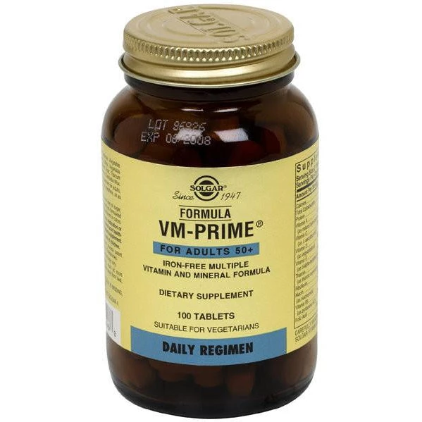VM-Prime For Adults 50+ from Solgar is an iron-free multiple vitamin and mineral formula that is suitable for vegetarians.