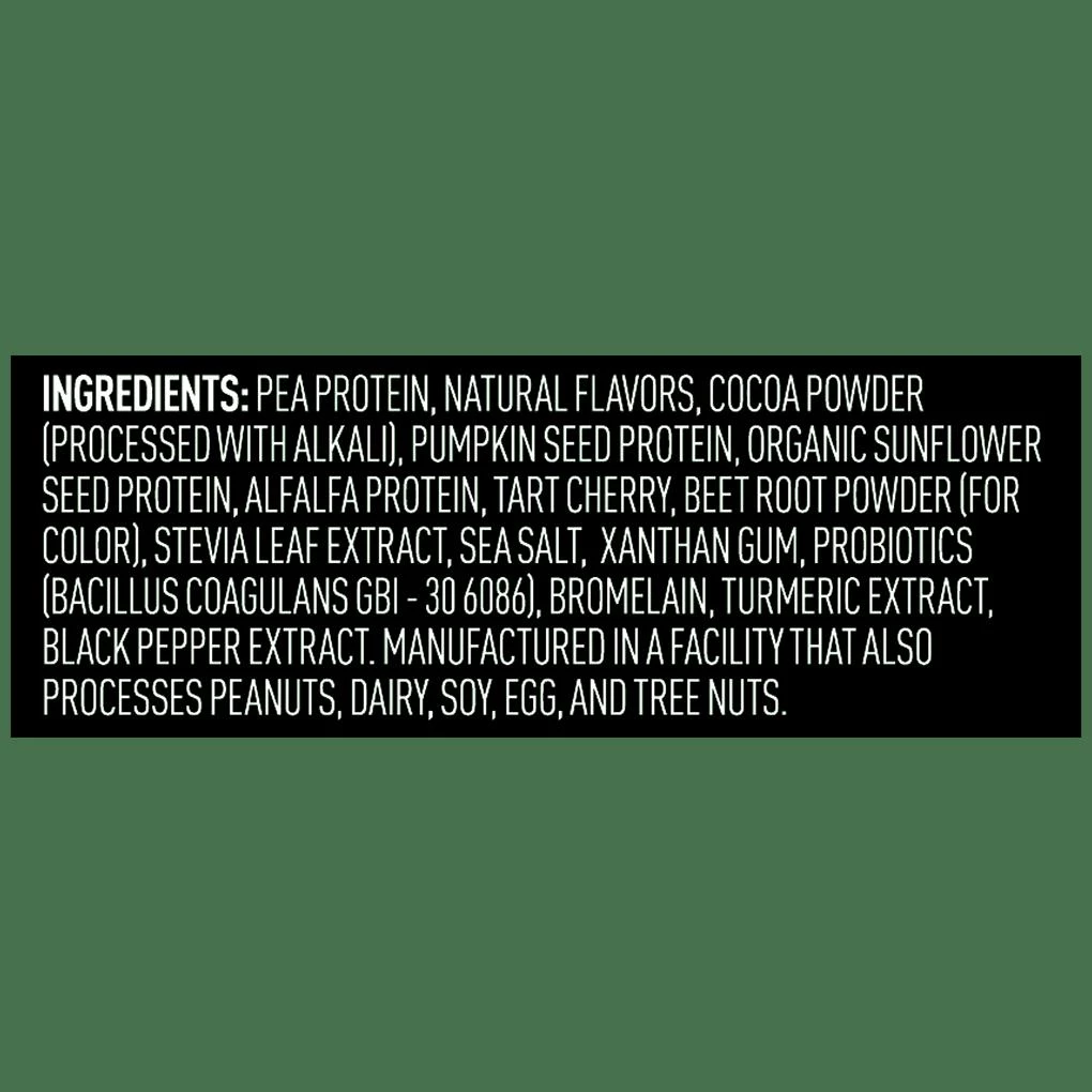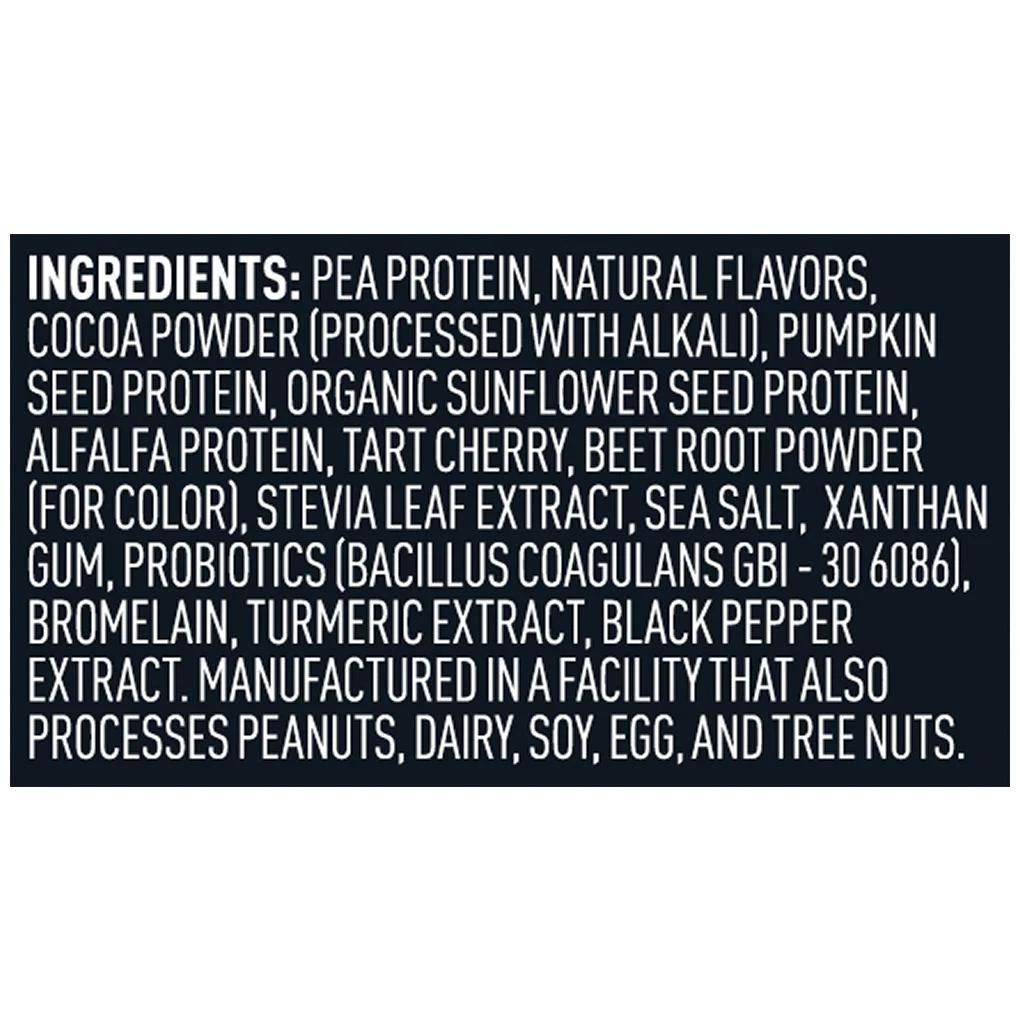 - 30 grams plant-based protein from pea, pumpkin seed, organic sunflower seed, and alfalfa protein