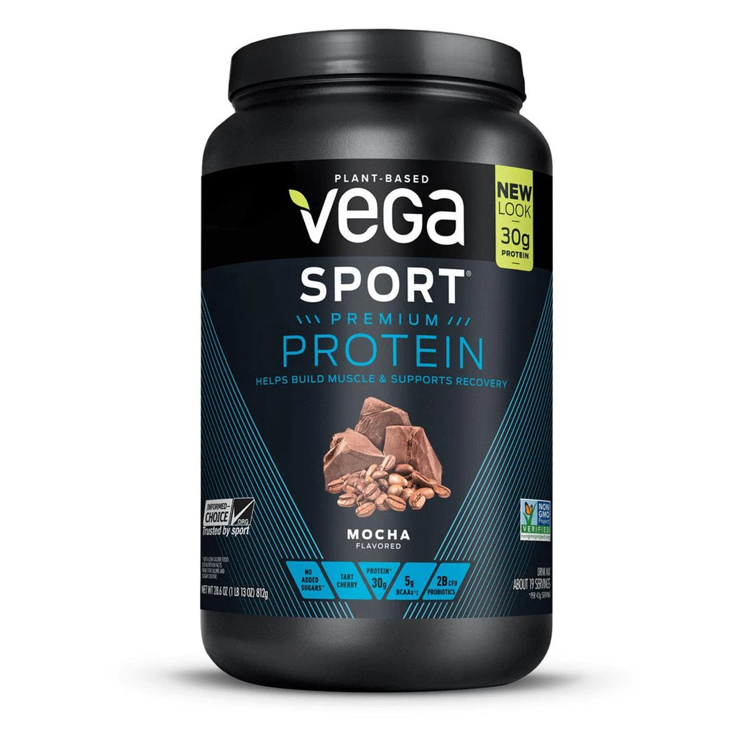 Shake one serving of Vega Sport Protein in 1 ½ cups (12 fl. oz.) ice-cold water, or a non-dairy beverage after your workout.