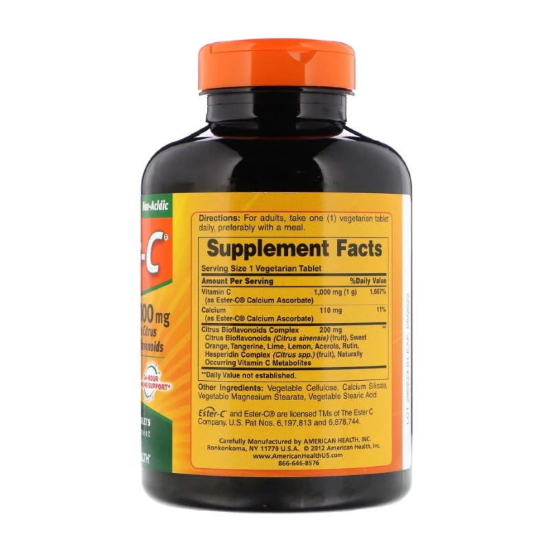 Ester-C is a breakthrough patented Vitamin C formula supported with naturally occurring metabolites. Metabolites help enhance the retention of Vitamin C by your white blood cells, an important part of your immune system. Ester-C has a neutral pH, making it non-acidic and gentle on the stomach. In a daily 1,000 mg dose, Ester-C delivers 24-hour immune support…so once a day is all you need. Added Citrus Bioflavonoids may help your body better absorb and utilize Vitamin C.