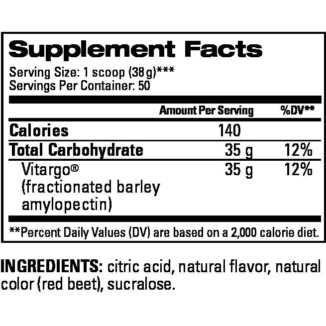 Vitargo is a patented, pure, unique, naturally occurring non-GMO barley starch isolate that is kosher, gluten-free, and free of added sugar.